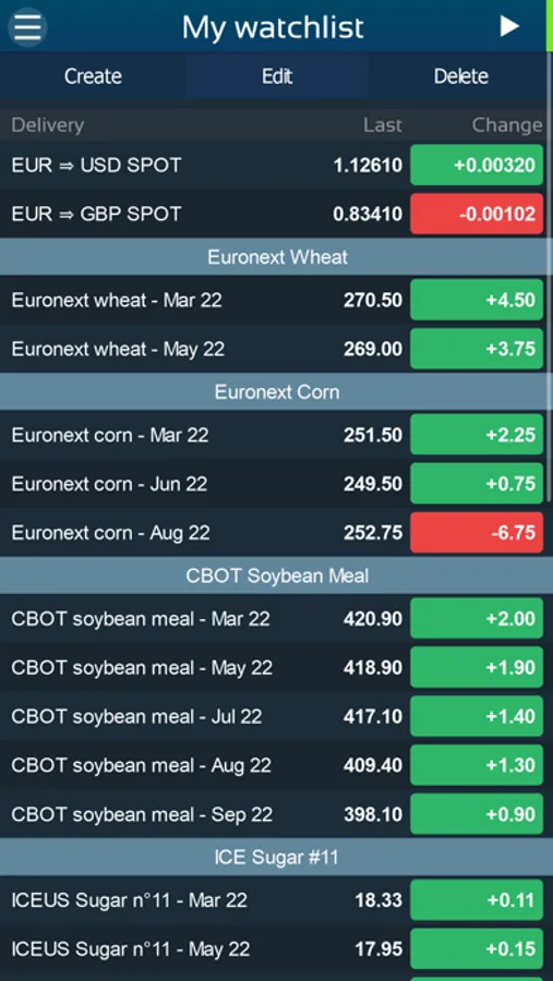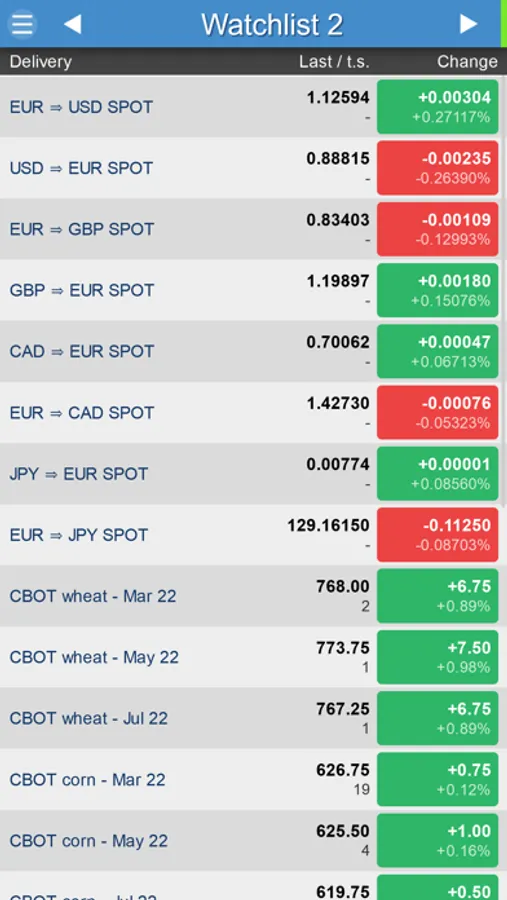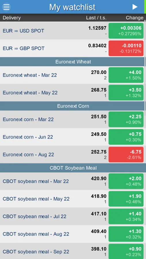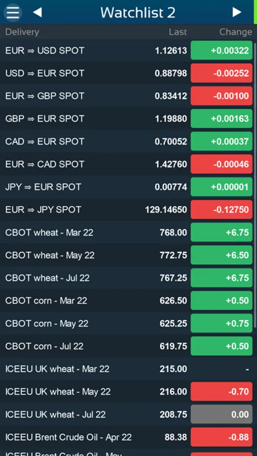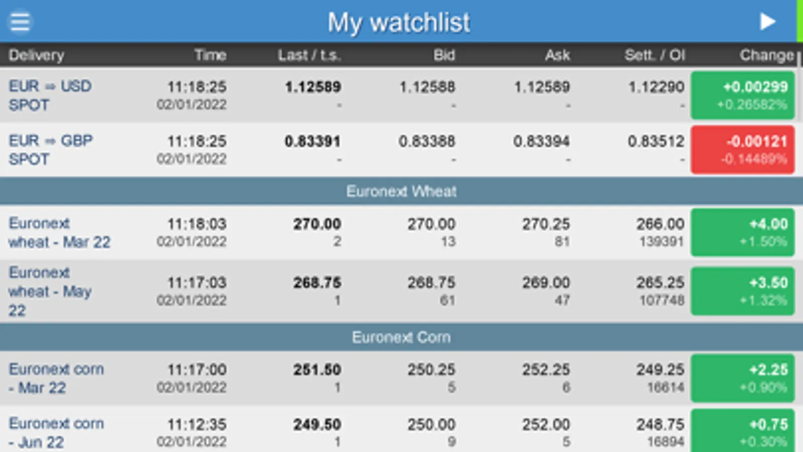 - Real-time streaming quotes (Euronext, CBOT, ICE EUROPE, ICE US, ICE Canada, KCBT, Forex)