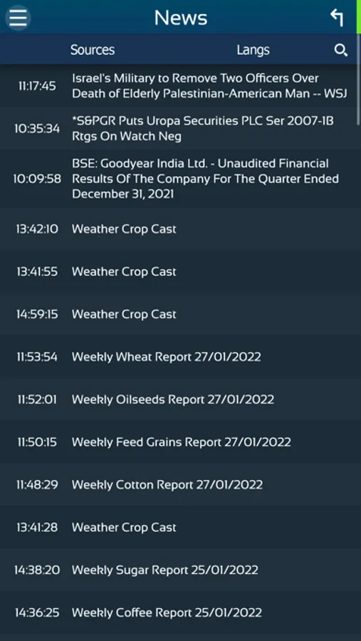 - Real-time news and comments (DowJones, AFP, Sitagri)