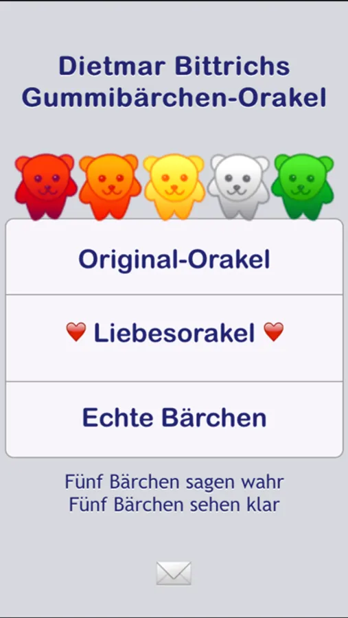 Dietmar Bittrichs Gummibärchen-Orakel jetzt auch auf Ihrem iPhone und iPad. So müssen Sie nie auf die Weisheit der süssen Bärchen verzichten!