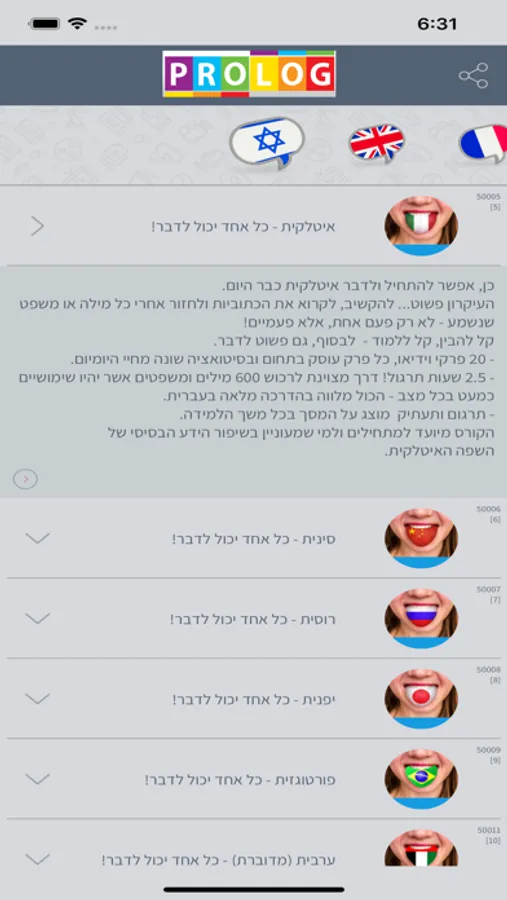 לימוד שפות מעולם לא היה קל יותר ונגיש יותר: כול הקורסים והשיחונים של פרולוג ללימודי שפות - עכשיו תחת אפליקציה אחת, פשוטה, נוחה וקלה לתפעול.