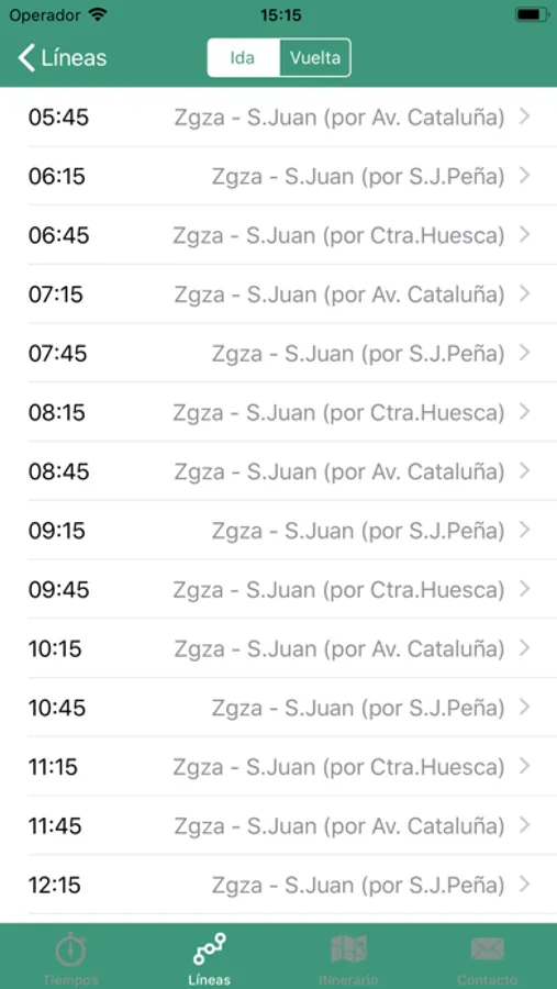 -Líneas: permite la identificación de las líneas del área del Consorcio que dan servicio entre un origen y un destino para una fecha determinada.
