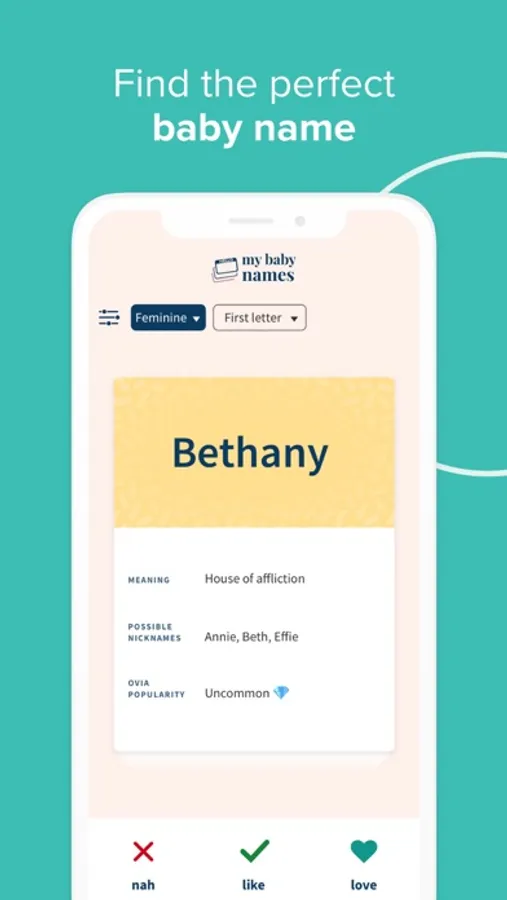 My baby names: We’re so excited to help you keep track of your favorite baby names (and hopefully find a winner!) with this new feature. Swipe through thousands of names to ‘like’ and ‘love’ your favorites.