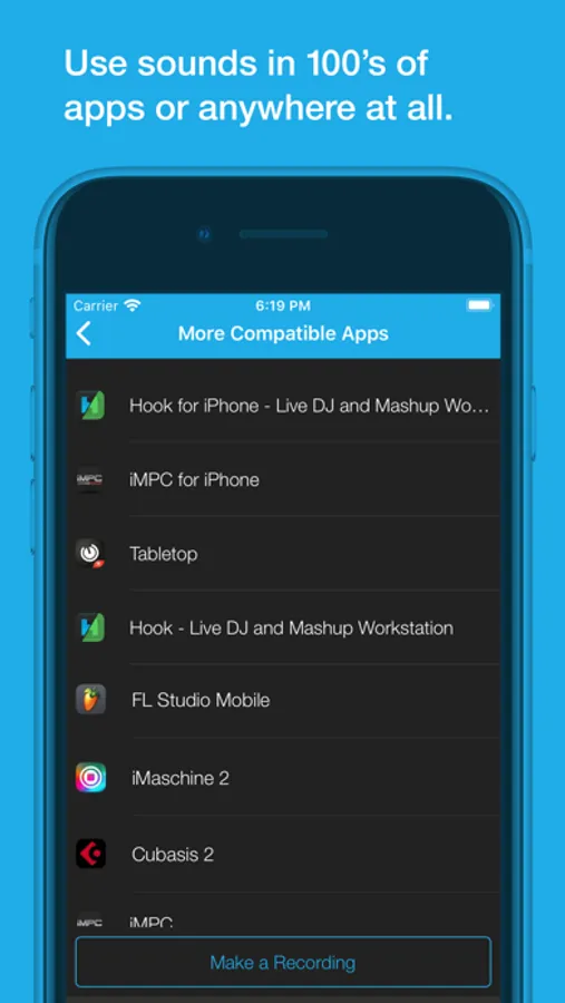 You can use Sound Packs from the Content Store in top music iOS apps like iMPC Pro, Tabletop, Launchpad, GarageBand, FL Studio, Cubasis, Auria, DM1 and hundreds more. Or export your sounds to your desktop and use them anywhere.