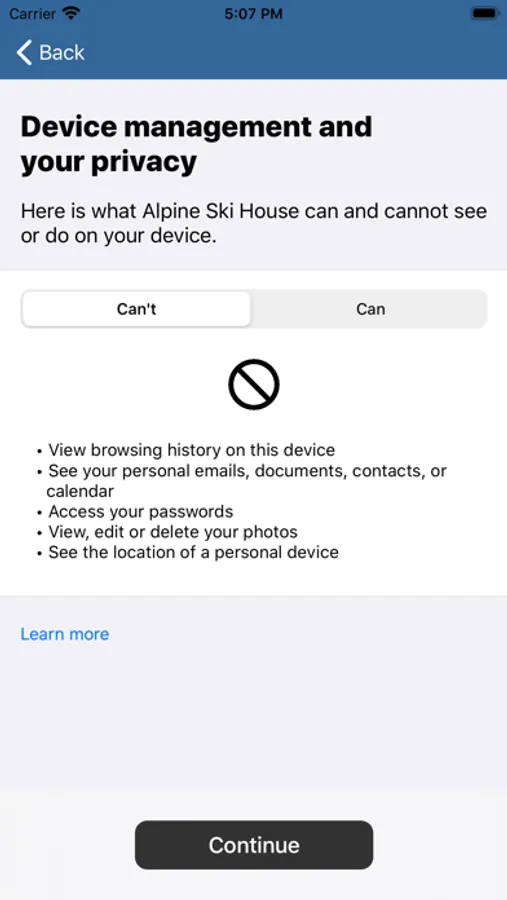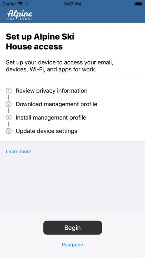 Before you can use this app, make sure your IT admin has set up your work account. Your company must also have a subscription to Microsoft Intune.