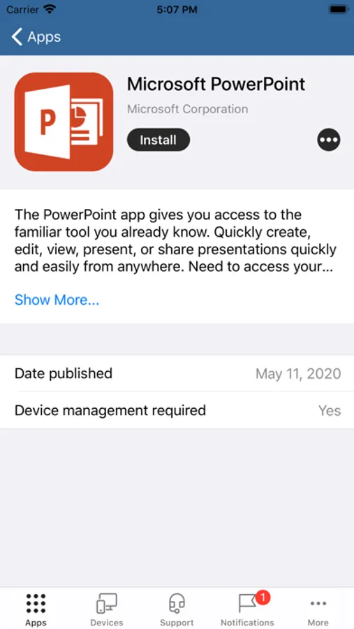 Microsoft Intune helps organizations manage access to corporate apps, data, and resources. Company Portal is the app that lets you, as an employee of your company, securely access those resources.