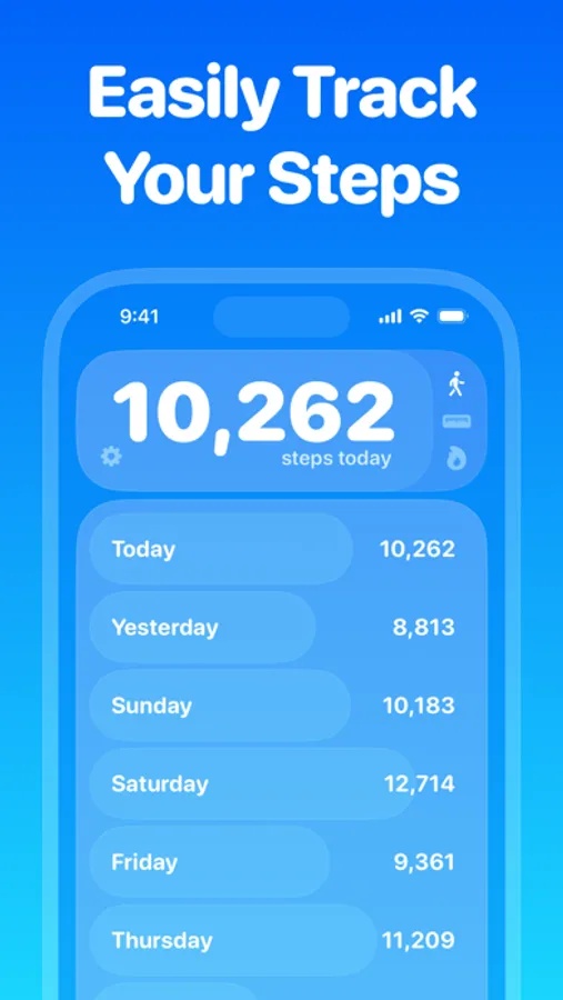 Unleash the power of daily, weekly, and monthly tracking! Steps keeps a vigilant watch on step counts, distances walked, and calories burned. Delve into deeper insights, identify trends, and confidently conquer new fitness milestones.