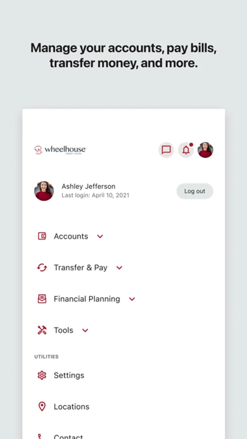 Welcome to Wheelhouse! This mobile app was designed with our members in mind. It allows you to view your entire financial picture, including any accounts you may have from other financial institutions. Manage your finances anywhere and anytime... all on your terms. Other features include: