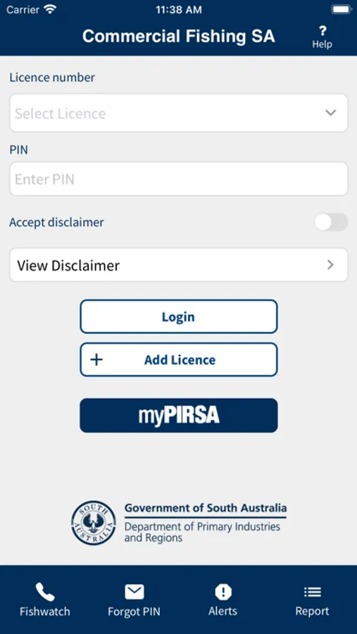 Use of the app is restricted to registered South Australian commercial fishers and a licence must be verified by Fishwatch for access via a 4 digit PIN. The app is supported by the Fishwatch call centre 24 hours a day.