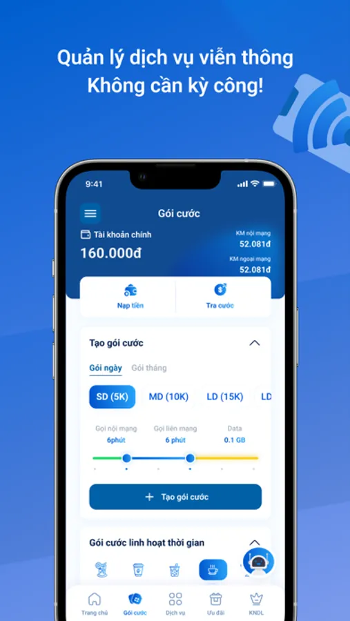 - Đăng ký gói cước & dịch vụ nhanh chóng, thuận tiện