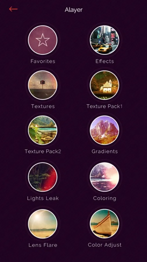 Add textures,lens flares,effects,lights leaks,gradients and color adjustments as unique Layers.All the layers are fully customizable.You can add your own textures.