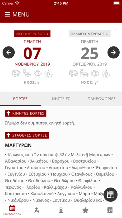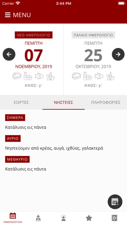 -Ειδοποιήσεις και καθημερινές ενημερώσεις για εορτές και νηστείες