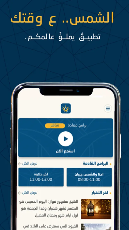 من خلال تطبيق الشمس, يمكنك قراءة اَخر الأخبار والاستماع الى برامج الاذاعة وفقراتها المختلفة وكُل ما يبث عبر أثير الشمس.