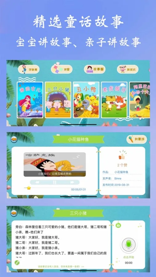 2、【涵盖儿童故事儿歌故事国学识物折纸】:涵盖宝宝所喜欢的经典儿歌,童话故事,唐诗宋词儿童识物,学汉字等,一个App满足各类需求。