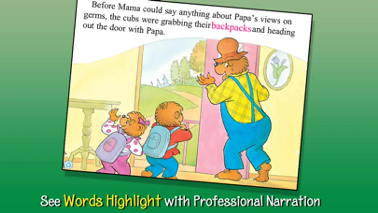 Join the Berenstain Bears in this interactive storybook app as Sister, Brother, and Papa learn all about avoiding germs to stay healthy! Explore pictures, learn new vocabulary, and personalize the story with your own narration. Will the Bears apply what they learn and avoid getting sick at school?