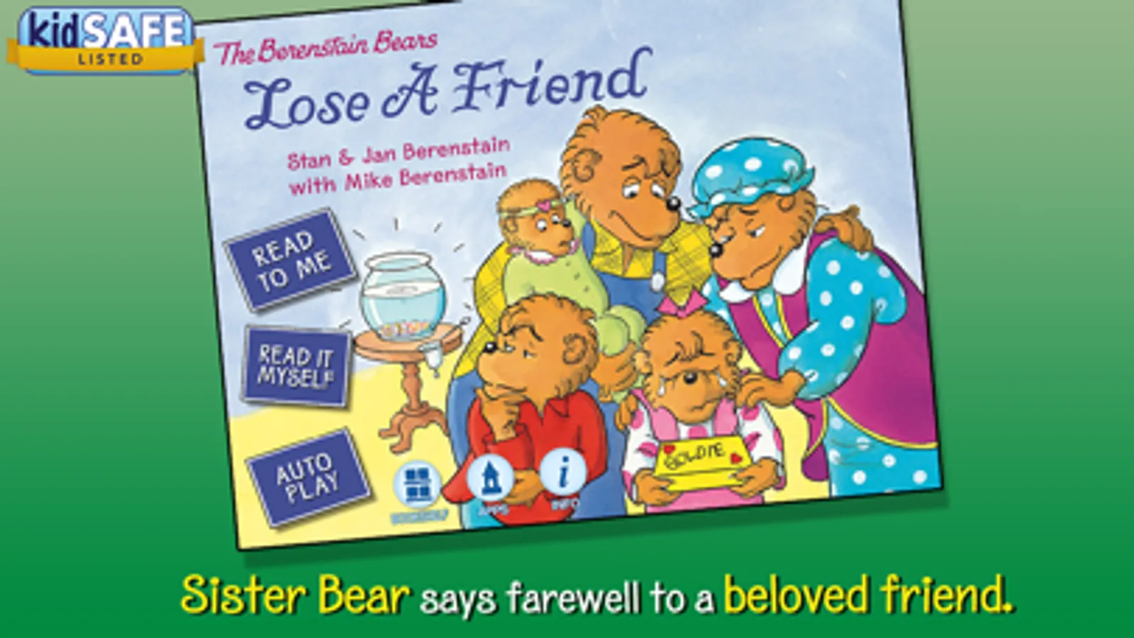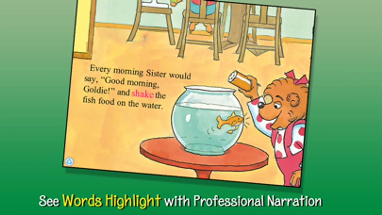 Join the Berenstain Bears in this interactive storybook app as Sister experiences heartbreak after losing her dear pet fish Goldie. Explore pictures, learn new vocabulary, and personalize the story with your own narration. How will Sister cope with the loss of her beloved pet?