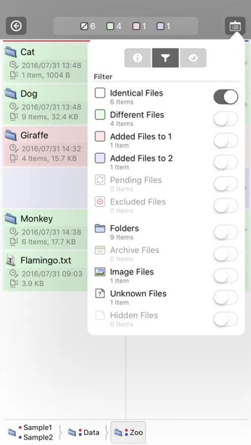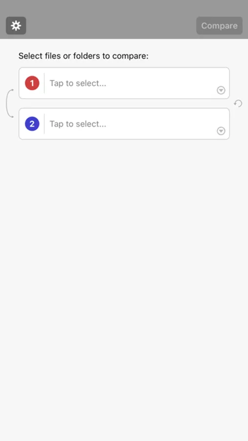 To select a file or a directory to compare, tap the red or blue highlighted button in Path bar.