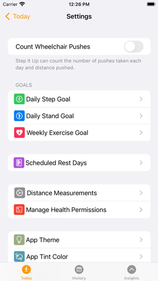- Wheelchair support: If you use a wheelchair Step It Up will track your pushes and distance pushed instead of steps and walking & running distance (Please note: this requires an Apple Watch).