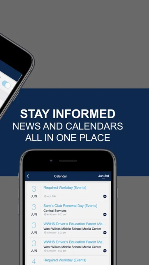 With the Wilkes County Schools mobile app, your school district comes alive with the touch of a button. Easily navigate through current news and events or check out the latest updates with social media like Facebook and Twitter. Quickly retrieve contact information, sporting scores, lunch menus, and more! It’s your school district available at your fingertips.