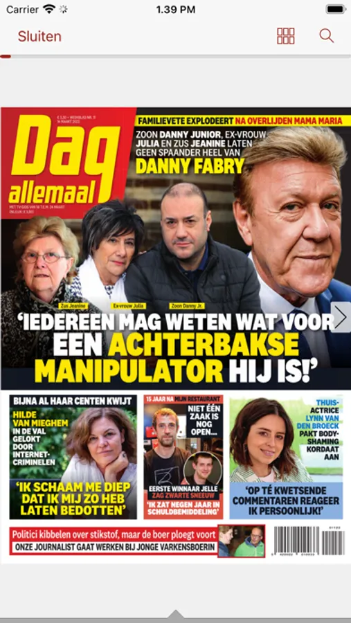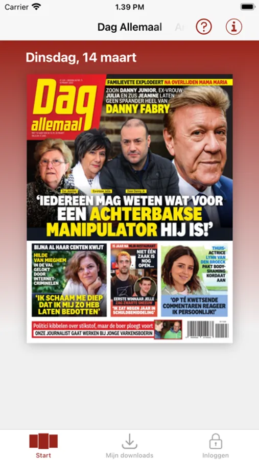 Wie geabonneerd is op Dag Allemaal, leest met deze app het magazine gratis. Weet u niet hoe in te loggen of bent u uw logingegevens vergeten, dan kan u terecht bij onze lezersservice: 02 454 25 93 (tijdens de kantooruren).