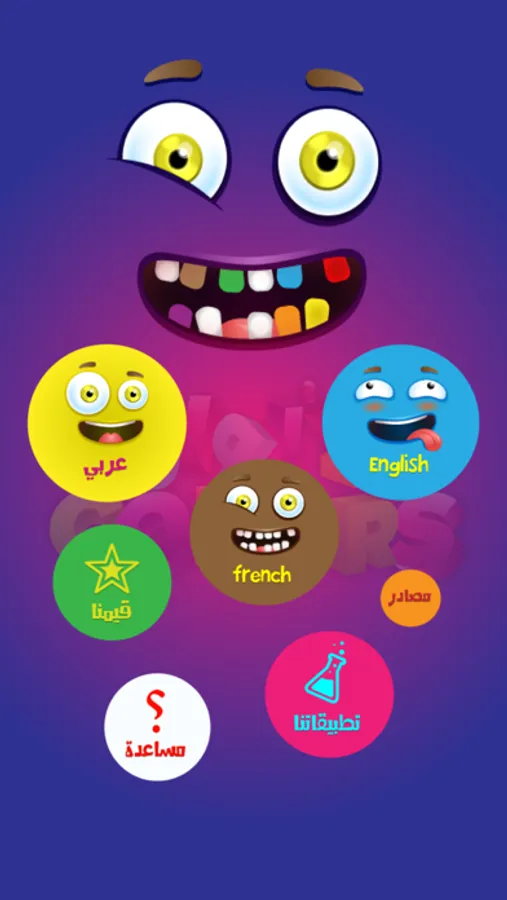 Application to teach children the names of colors / colurs in Arabic, English and French in an attractive manner and distinctive using (expressions of the faces of colors) so that the child clicking on the color to listen to the correct pronunciation of him at the same time changing facial expression used to color imparted a kind of happiness and fun during the learning process.