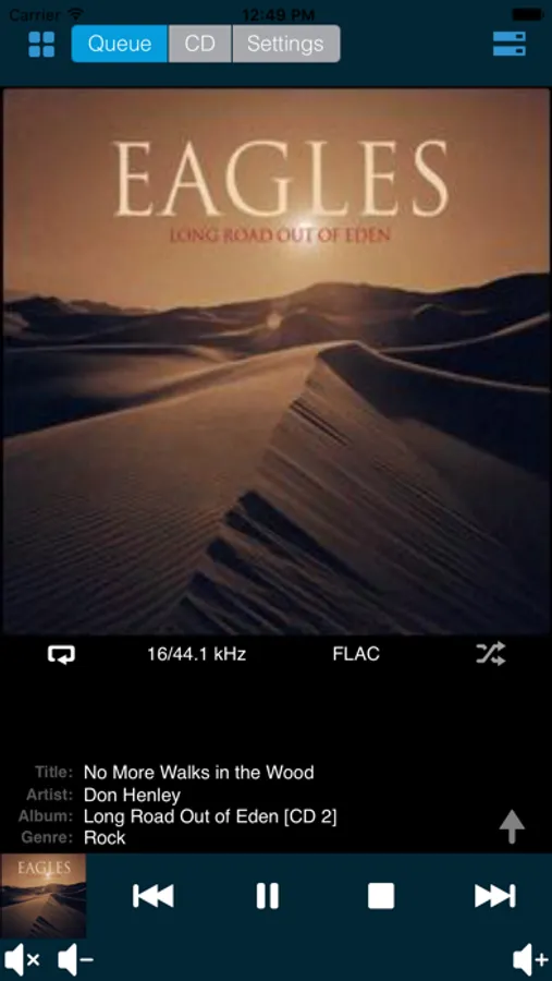 The app features support for the creation, editing and saving of music Playlists and Play Queues as well as the ability to shuffle, repeat and skip tracks within these.