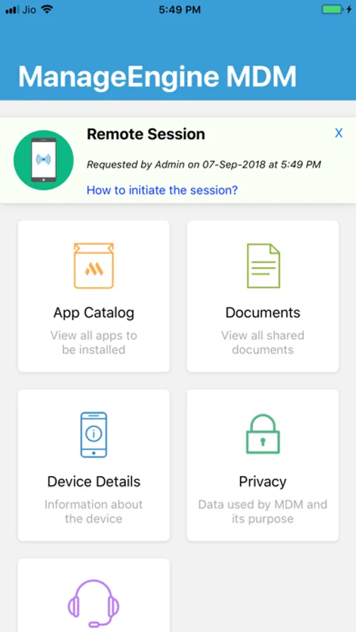 ManageEngine MDM is the agent app used by ManageEngine Mobile Device Manager Plus or ManageEngine Desktop Central, for efficient management of mobile devices in an organization. This app can be installed on devices running iOS 10.0 or later versions and supports the following features: