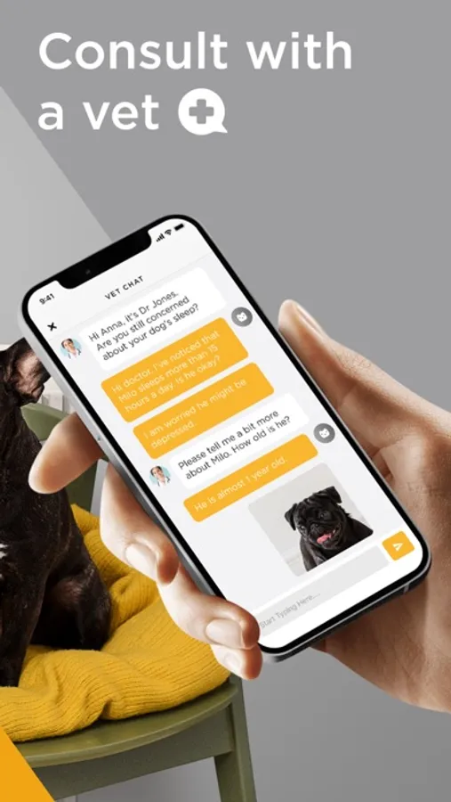Instant access to 24/7 licensed vets from Petcube app with unlimited chats, follow-ups, personalized care, and health tips. Now you’re in a control, talk to a vet when you have time to, no vet appointment or pet camera is needed!