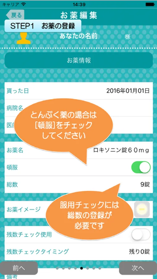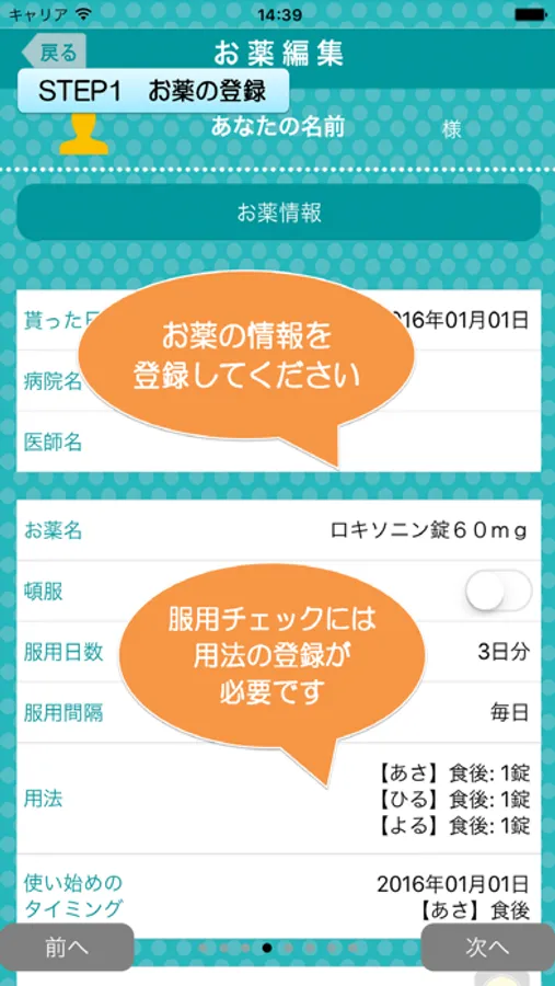 登録の煩わしさはなく、簡単に服用の登録ができます。