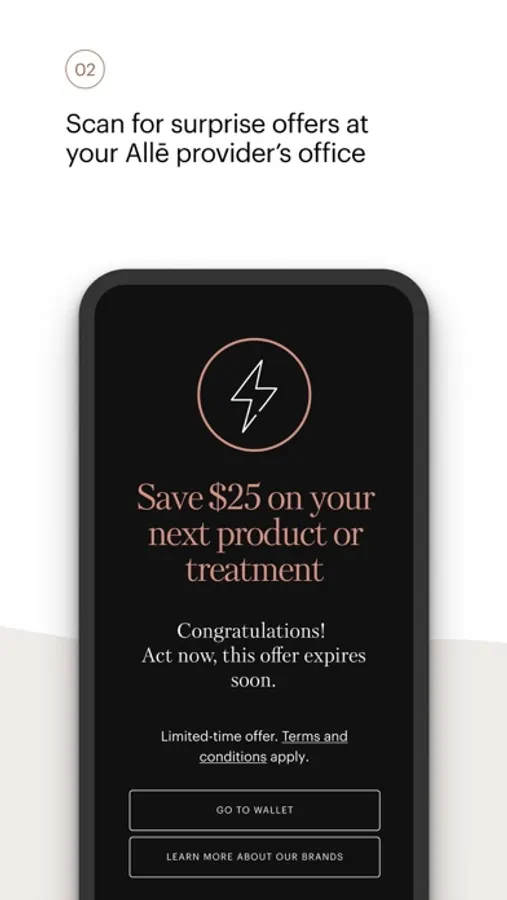 Allē is your go-to app for your aesthetic needs, giving you access to curated content, treatment information, exclusive offers, and your Allē Wallet.