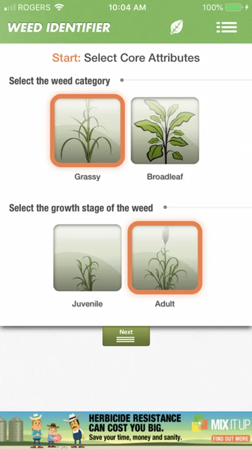 IDENTIFY: The Weed ID app lets you ID weeds based on key characteristic selections you have identified. It also allows you to search for weeds, view the weed database, and provide detailed descriptions and photos of the weeds.