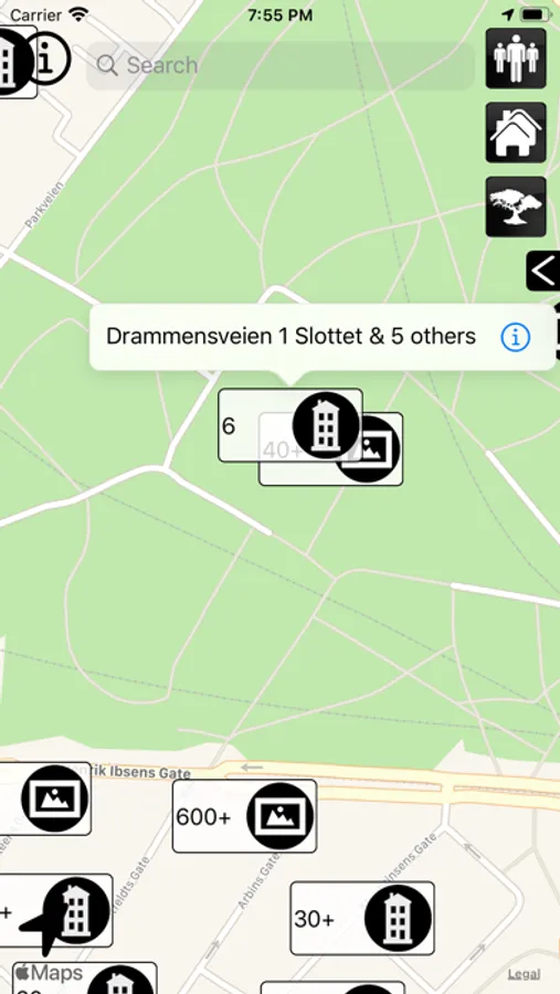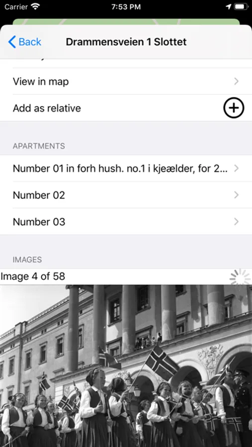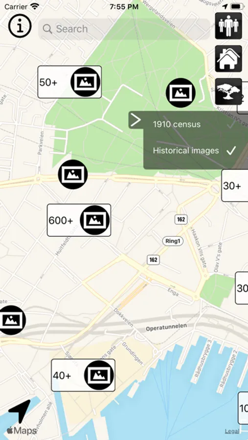 The app displays all residences of the 1910 census that have been located in the map. The census is administrated by the Norwegian Digital Archives and its data are continually improved in terms of mass and accuracy.