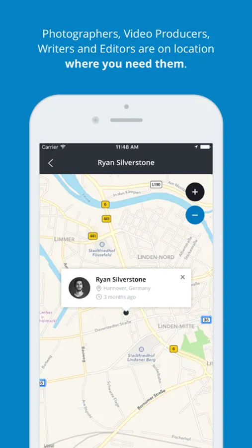 Search and connect with the most talented photographers, directors, videographers, writers and media companies around the world. Using real-time location data from our mobile app, you’re able to hire on-location talent fast.