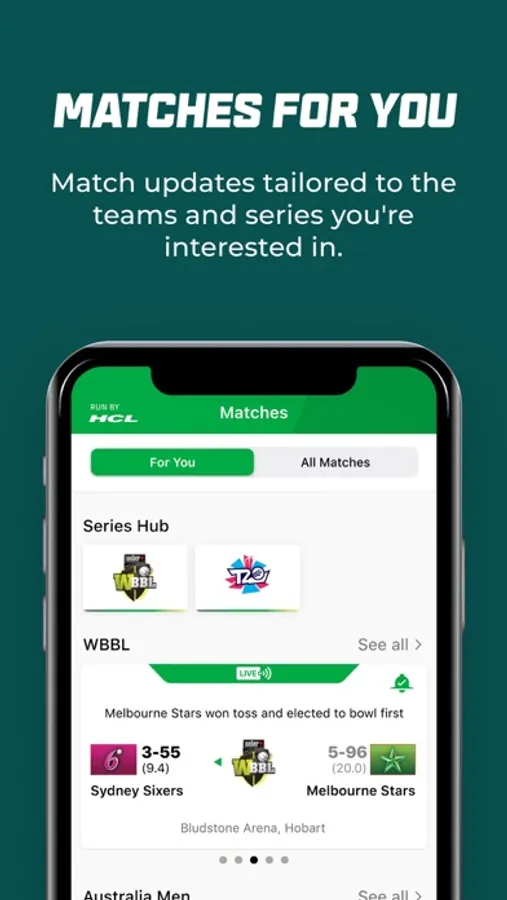 • Live streaming of Australia Men’s and Women’s international matches played in Australia *