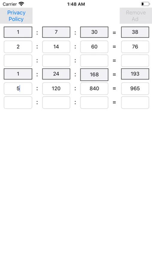 A simple free ratio calculator application that calculates the ratio and the total of input values from the specified three ratios, and back calculates the three ratios from the total. Calculate the heating time from the output wattage of the microwave oven.