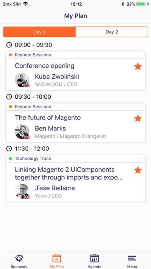 This app is developed by Snowdog to improve Meet Magento conferences. The intuitive interface makes it easy to use and organise your conference plan. Our app gives you access to agenda, current information about presentations and speakers. You can choose only that events which interest you and add them to your plan divided by days.