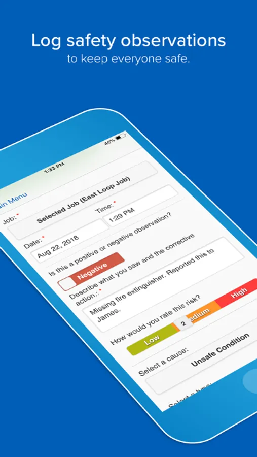 • OBSERVATIONS: See a hazard? Report it to keep everyone safe on the job. See a stellar example of safety? We make it easy to provide positive reinforcement, too.