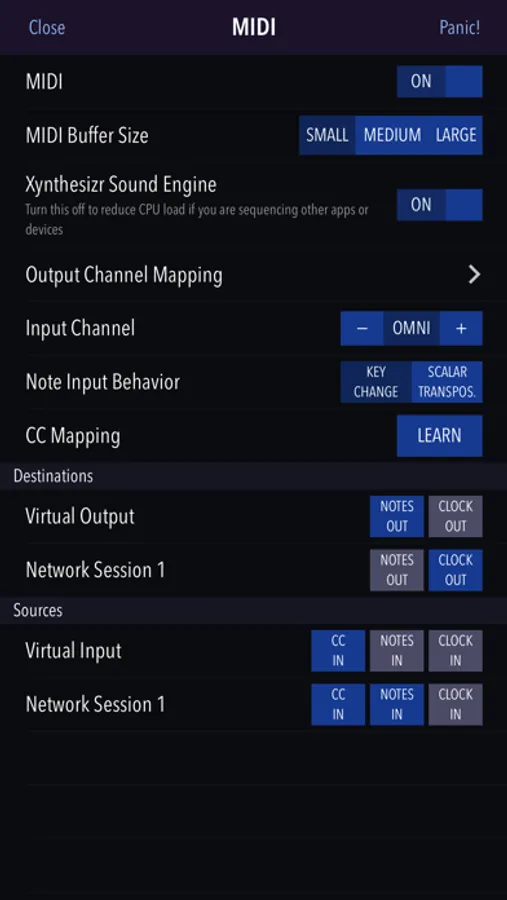 ◦ Notes to MIDI channel mapping for driving multiple apps or devices simultaneously