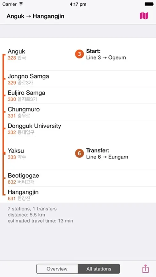 ROUTE PLANNER - instantly finds the fastest route and displays it on the map including transfer stations.