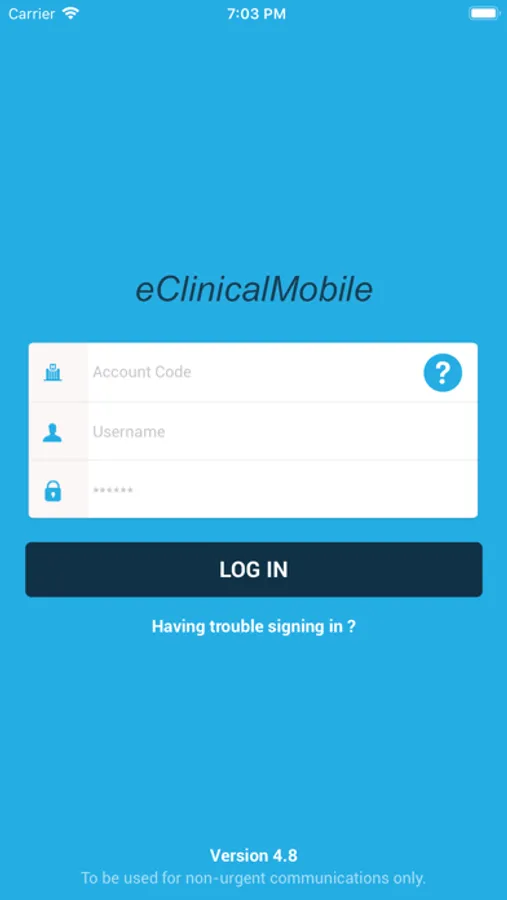 eClinicalMobile provides user name and password as part of the log-on security function. Once logged in, icons are displayed for ease of use in choosing your function.