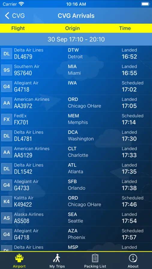 App lets you know if your flights delayed or cancelled and gives you the tools needed to quickly find an alternate flight from Cincinnati.