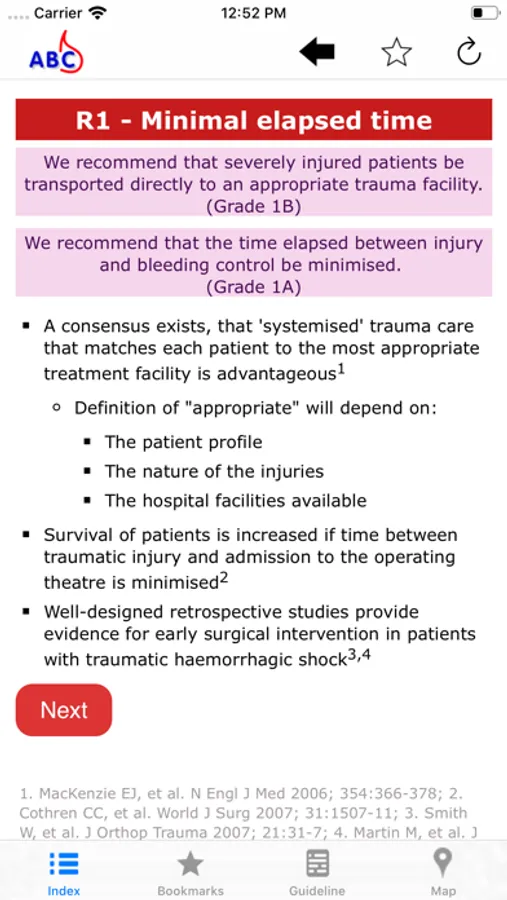 This clinical practice guideline provides evidence-based recommendations that aim to support the acute management of the bleeding trauma patient, which when implemented may improve patient outcomes.