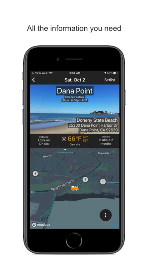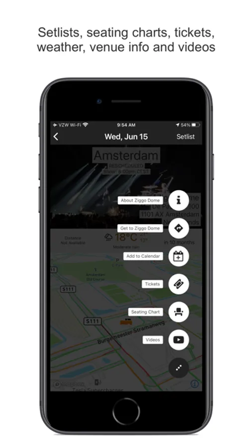This application helps you find all the information that you need for the current Pearl Jam tour. Access directions, setlists, seating charts, showtimes, tickets, local weather and videos for every show in the run.