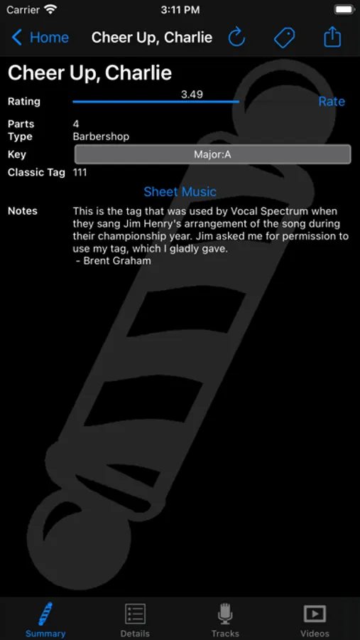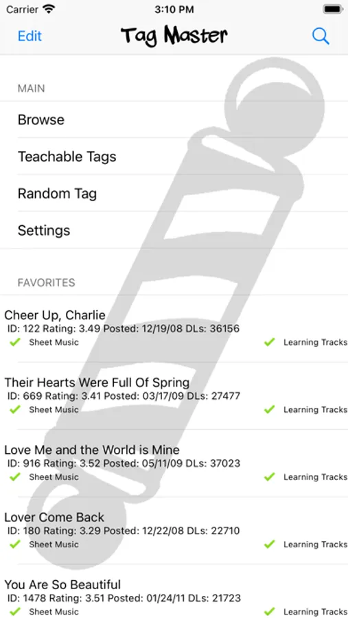 Tag Master gives iOS users easy access to the huge repository of barbershop tags provided by BarbershopTags.com. Tag Master is an essential tool for the barbershopper on the go, and will help keep your afterglows glowing late into the night! With Tag Master you can: