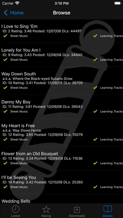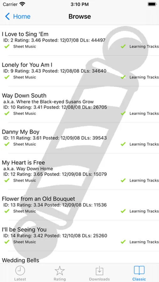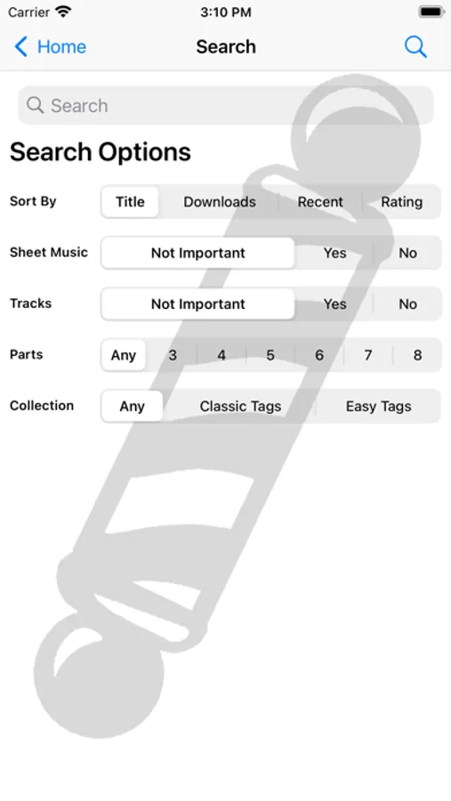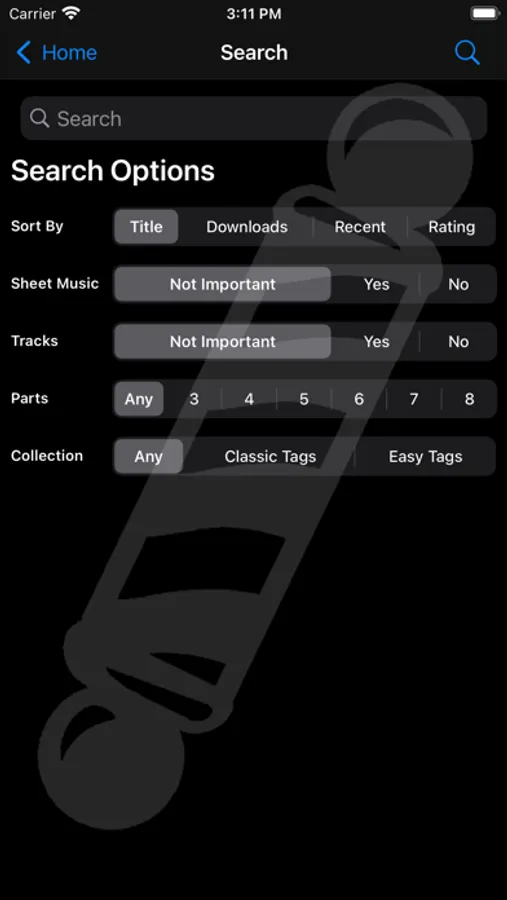 - Filter tags by number of voice parts and whether sheet music or learning tracks are available