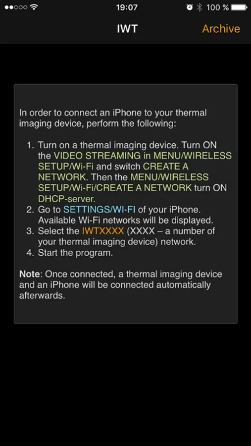 The application provides playback of video stream and control settings of the supervisory unit IWT.