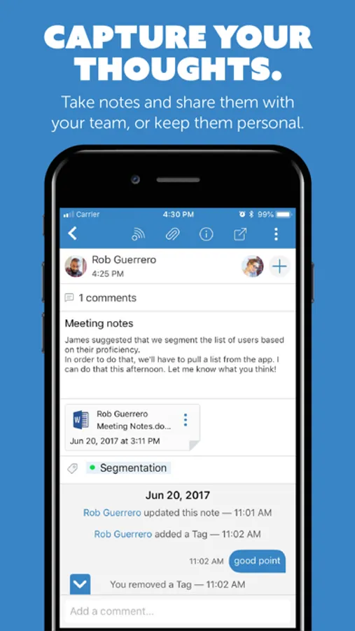 • Integrations to many popular business apps including Dropbox, Google Drive, Salesforce, Jira, Marketo, Zendesk and more to assure that you have all the tools you need to collaborate