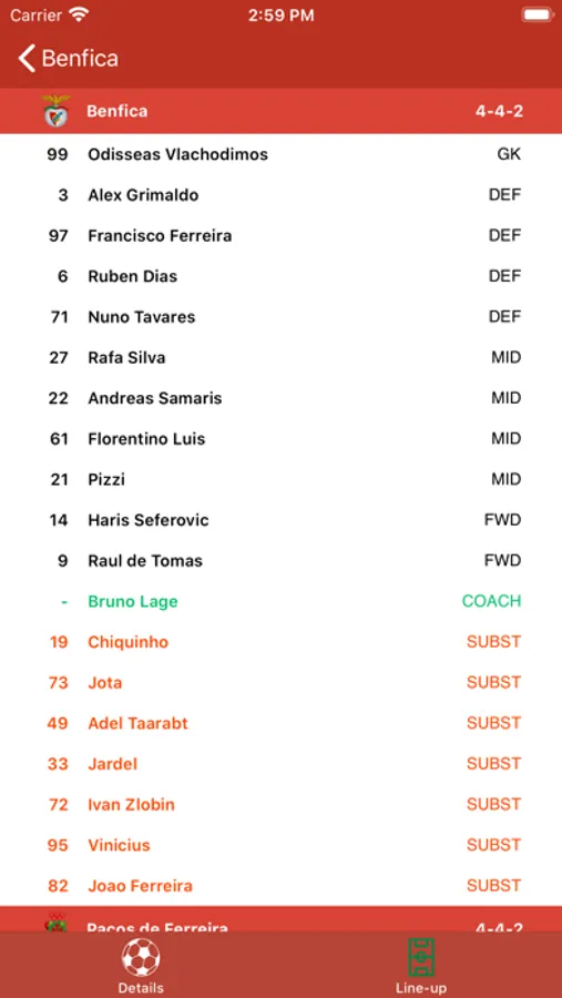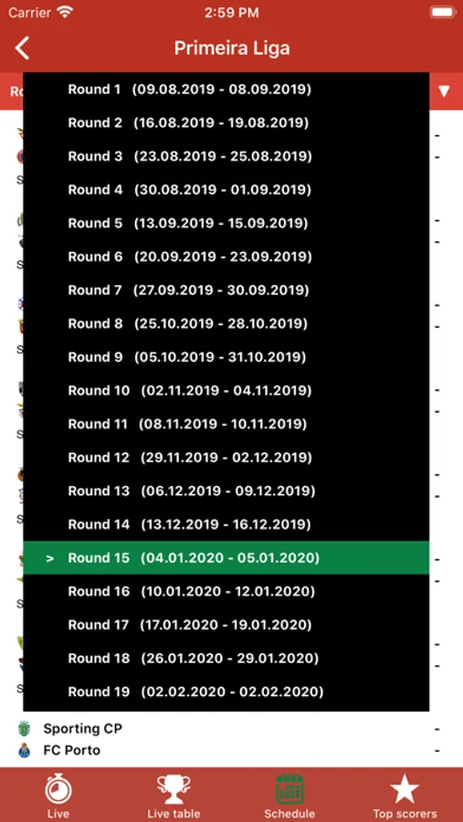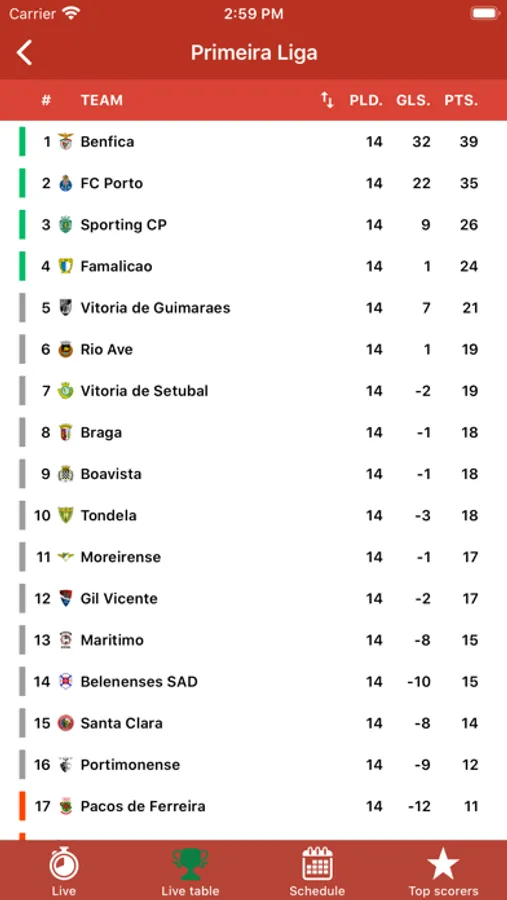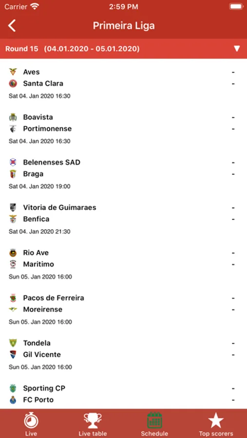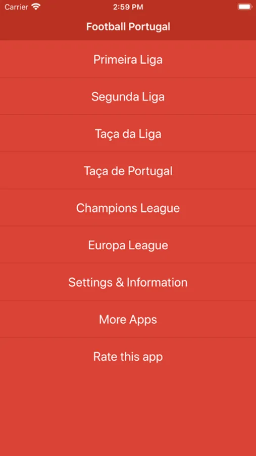 In the app you will find: Primeira Liga, Segunda Liga, Champions League, and Europa League...