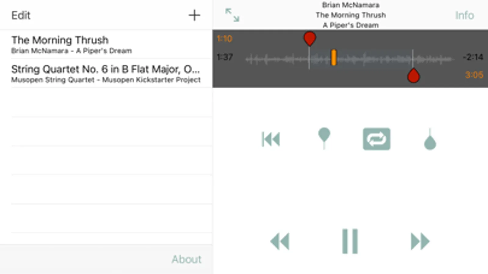 • Import from any other app that can export an audio file - wav, mp3 and AAC files are supported.