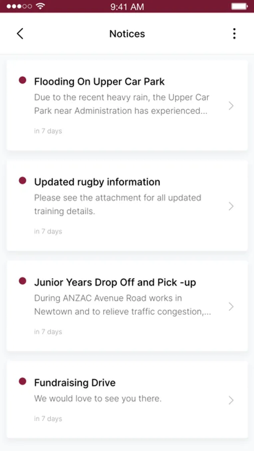 The notices section keeps you informed of important daily notices as they become available. Push Notifications will also be sent to inform you of any urgent or important information. Sport Cancelled? The notice section will alert you.