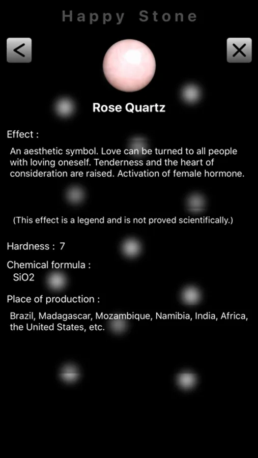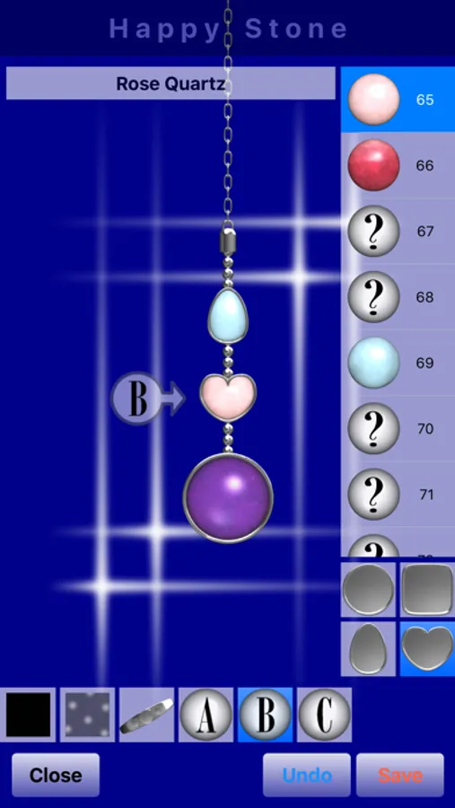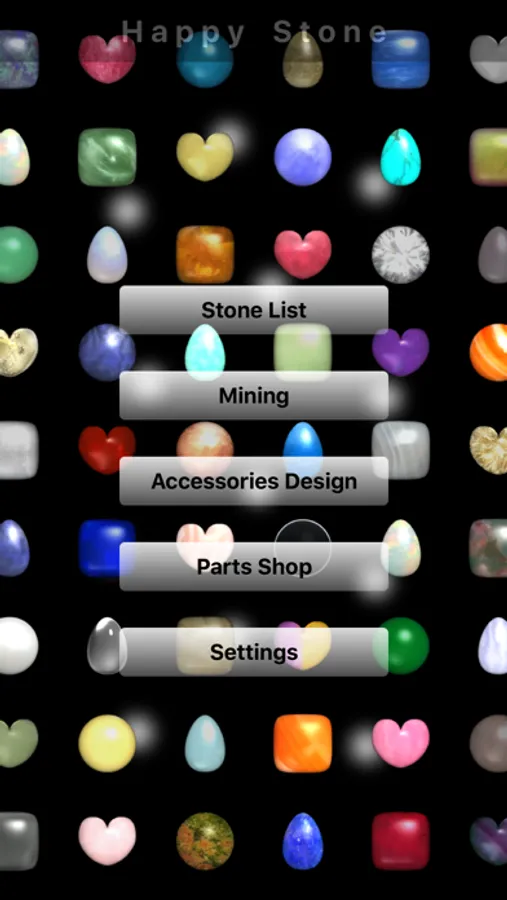 "Accessories Design" : A background and accessories can be chosen and the gained stone can be arranged. Let's obtain a background and accessories using a point by Parts Shop. If 300 points are used, an image can be saved in the Photos of iPhone. (In the case of a charged version, it can save, without using the point.)
